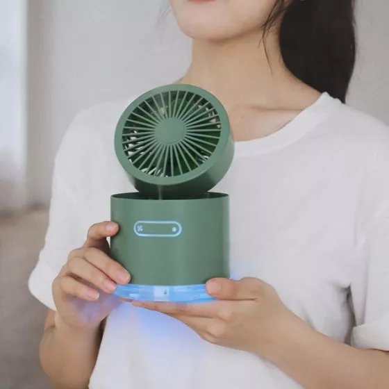 This air cooler fan and humidifier is fabulous & lets me feel a bit of coolness and humidity. Small but mighty, and super cute color too! The 3 speed feature works great.